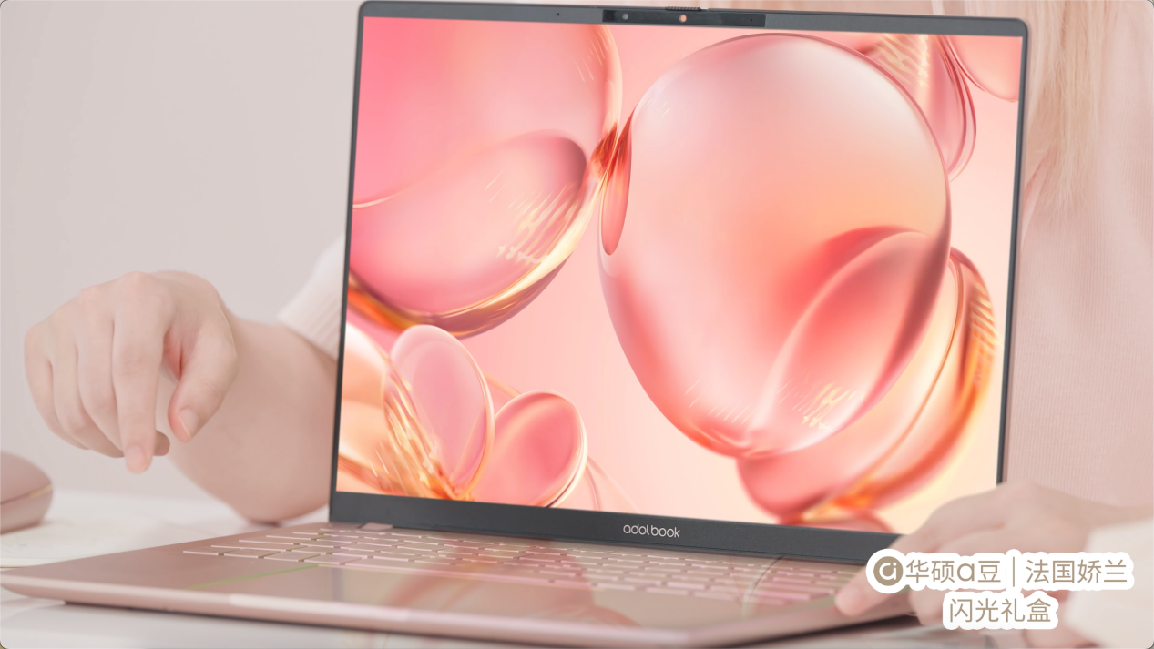 全新华硕a豆14 Air 香氛版以雾面喷砂打造丝绒质感基底,搭配「瑰蜜粉金」配色,甜蜜浪漫、优雅精致,诠释现代自信张扬的设计美学。