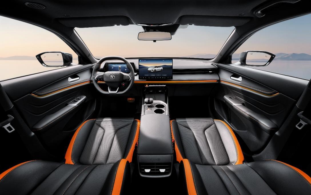 “智颜”“智擎”“智座”是该车三大产品属性。在“智颜”方面,第三代UNI-V采用专为年轻灵魂定制的“未来先锋运动美学”设计语言,1:3.3的极致头身比,使整车侧面看上去更加修长舒展;3倍轮轴比设计,让车轮与轴距在视觉上达成了一种精妙平衡;而0.78倍的黄金高宽比配合2.18倍的轮高比,让车身呈现出高性能轿跑该有的低趴运动姿态,宽体车身也进一步提升了乘坐舒适性。同时,该车采用自动升降尾翼、超大运动卡钳、半隐藏式门把手、双边四出真排气、18个扬声器和杜比全景声、无麦K歌等提高爽酷感的配置。