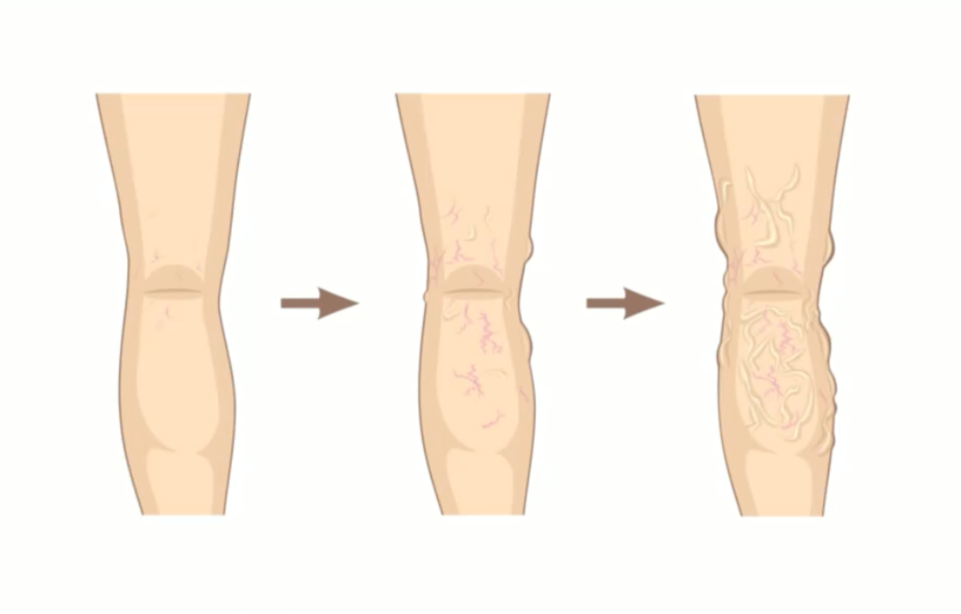 发展速度因人而异,不到严重程度不用急着手术。到了后期,如果像蚯蚓状的血管凸起,尤其是如果出现了症状,比如酸胀、水肿,甚至出现一些并发症,伴随有色素沉着或皮肤溃烂,这种情况迁延不愈,就要进行手术治疗,如射频消融、硬化剂注射。