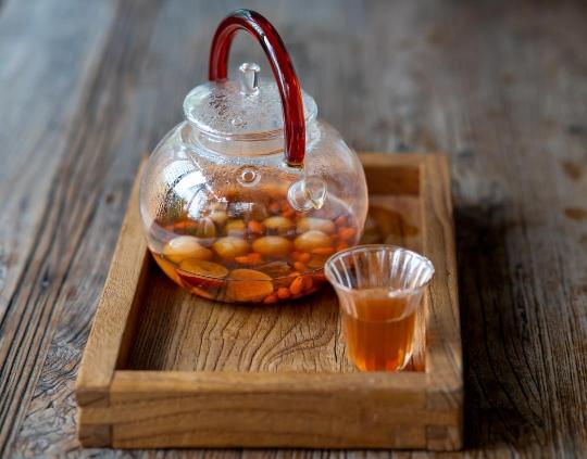 做法:所有材料冲洗干净,放入养生壶中,加1升清水煲煮20分钟,可加入适量冰糖调味,代茶饮用。