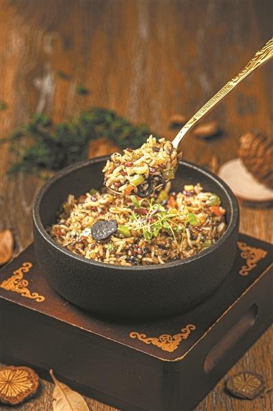 创始人严建军说,他们在全球严选优质食材,选用意大利有机橄榄油、有机食材等打造无国界融合蔬食料理,只为给食客带来沉浸式的美食体验。门店里最受消费者欢迎的是黑松露炒饭,厨师选用糙米、大米、黑米,用意大利橄榄油和意大利黑松露酱炒制而成,大米用古法木桶蒸好再炒,软糯Q弹,粒粒分明,新鲜黑松露片点缀其中,味道层次丰富。榛果糙米浆是必点饮品,啜一小口,细腻丝滑,香甜浓郁。据介绍,它是将糙米炒香,榛果烤香后,再放入破壁机打成稠厚奶昔状,仅用冰糖浆稍作调味,一入口浓郁的米香和坚果香便涌现而出。藜麦椒麻豆腐是一道很有爱的素食,是创始人为小女儿研发的菜肴,嫩豆腐搭配超级食物三色藜麦,在麻辣鲜爽中满足对蛋白质的所有需要。