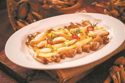 尝菌子本味,油盐清蒸荔枝菌是不容错失的,在白云区广州新世界酒店的一方中餐厅里,正有这道菜。洗净泥沙的荔枝菌,以简单的油和盐调味,放入蒸笼约莫4分钟,便可出炉。无须多余食材,盐油清蒸的荔枝菌入口清香爽口,鲜得很。