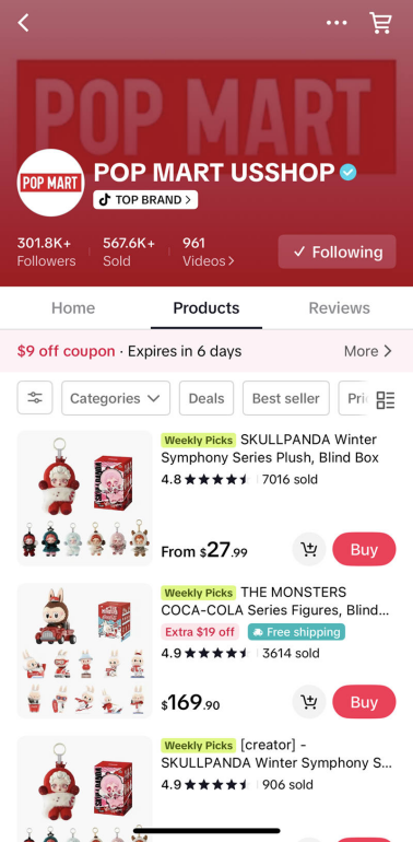 “TikTok Shop为我们带来了惊人的增长势头。”泡泡玛特北美负责人Larry Lu接受美媒采访时感叹道。自 2023 年下半年入驻美区 TikTok Shop 以来, 泡泡玛特用不到两年的时间,实现销量接近 60 万件。根据第三方数据,仅TikTok美国小店就为泡泡玛特带来3500万美元的营收额。