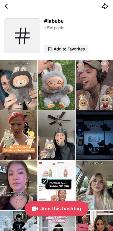 图为:TikTok上,“Labubu”标签下已有超过150万条视频