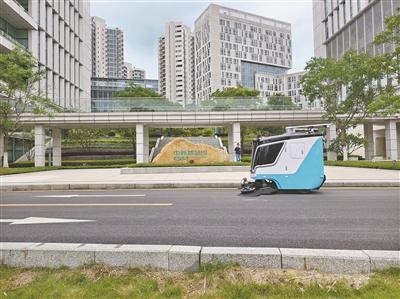 赛特智能S3无人驾驶清扫车在园区内作业。