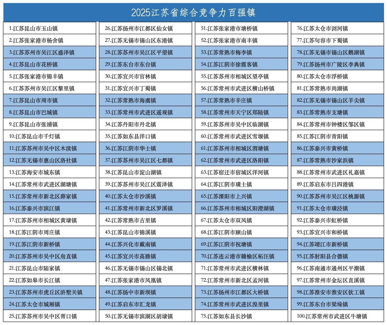7月26日,“2025乡镇高质量发展交流会”在江苏省苏州市吴江区盛泽镇召开。大会发布了《中国乡镇综合竞争力报告2025》(以下简称《报告》),揭晓了2025中国百强镇、中国中部百强镇、中国西部百强镇以及江苏省百强镇名单。与会代表围绕会议主题,聚焦城乡融合发展、乡镇产业升级、要素配置优化、乡村治理提升以及推进共同富裕等议题,探讨交流了乡镇高质量发展的新思路、新举措、新成效。
