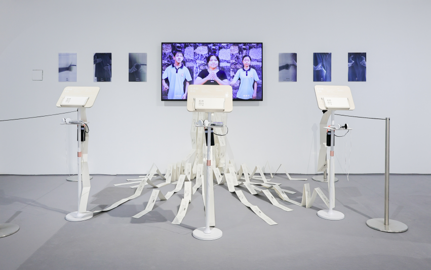 四位艺术家则在艺术漫谈环节,带来了多维度公益表达。其中世界动画协会中国分会成员何文文与设计师黄松晟以《无声的告白》,向失语者发声,鼓励失语者勇敢表达自身的美好,并通过虚拟与现实交织的空间,让每一句无声的告白“发声”。雕塑艺术家、中国雕塑家协会会员刘宝亮的作品《我在现场》,打造了一场由废墟与鲜花构筑的蒙太奇叙事,展示了一种具体而临近的美好。灯光艺术家刘洋的作品《彼时此刻》,以日常物与多媒体融合,构建出一个意境美好的诗意空间,并借助AI技术创作了“一老一小”两位女性的生命影像与声音,让人沉浸“彼时”与“此刻”的共存。
