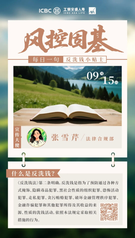 为深入贯彻落实中国人民银行上海市分行《关于开展2025年反洗钱宣传月活动的通知》精神及新《反洗钱法》要求,工银安盛人寿立足“风控固基”战略精准布局,于2025年9月反洗钱宣传月期间,精心策划并高效执行了一系列主题突出、形式新颖、覆盖广泛、成效显著的反洗钱宣传活动,掀起全民参与新热潮。