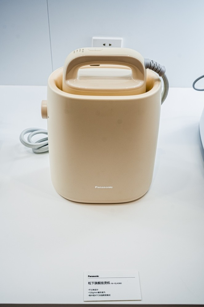 清洁家电方面,松下带来今年9月刚刚上市的旗舰不占地挂烫机GLK060,拥有120g/分钟的爆炸蒸汽和2100W的高性能,支持喷熨、挂烫、平烫三重模式,搭配智能温控技术实现三档干烫+三档蒸汽调节,轻松应对不同面料衣物。